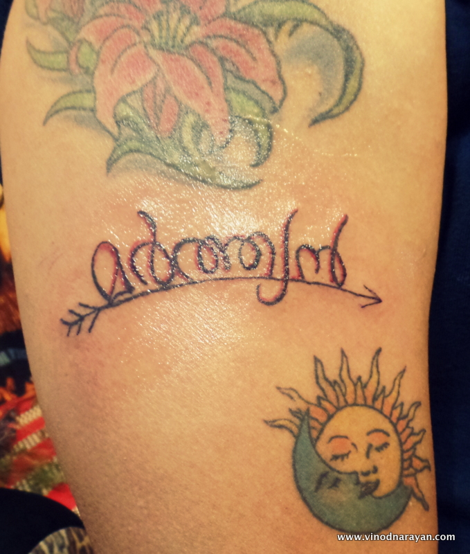 SAMSUNG CAMERA PICTURESSo before the new year starts I got my third Tattoo… ‘മർത്ത്യൻ’ which is a malayalam word and reads ‘Marthyan’. The literal meaning of ‘Marthyan’ is ‘Mortal’ and the antonym being ‘Amarthyan’ or ‘Immortal’. ‘Marthyan’ is also used in malayalam language to suggest ‘Human being’