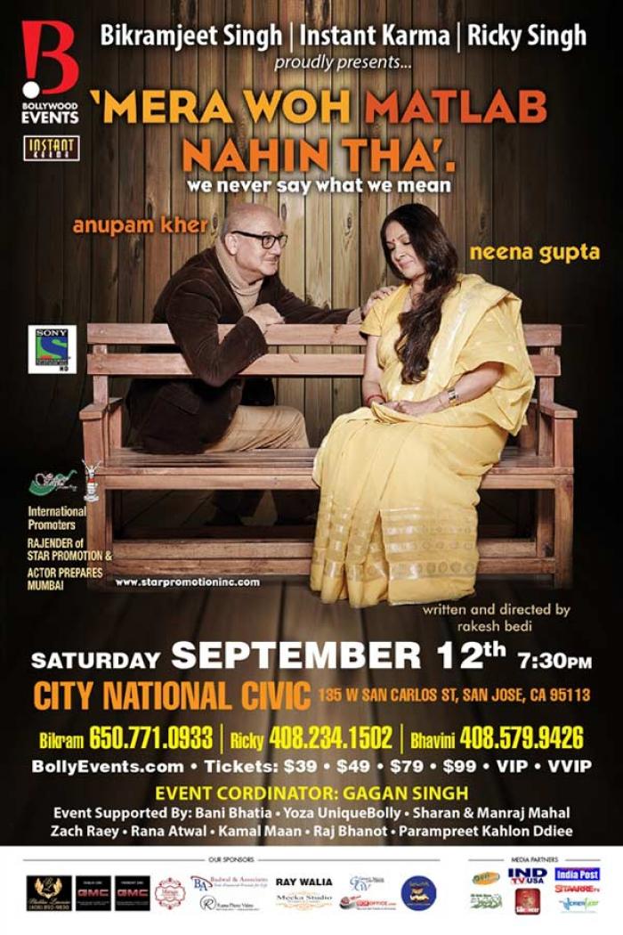 Thirty years later I get a chance to see the Man himself on stage live in the Play Mera Woh Matlab Nahi Tha (That was not what I meant), which is a typical conversational usage in hindi. The play is scripted and directed by Rakesh Bedi a wonderful actor with an amazing comedy timing. Joining Anupam in the lead is Neena Gupta who is one of the finest female actors in the Indian Cinema and theatre.