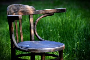 He sat in an old wooden chair
