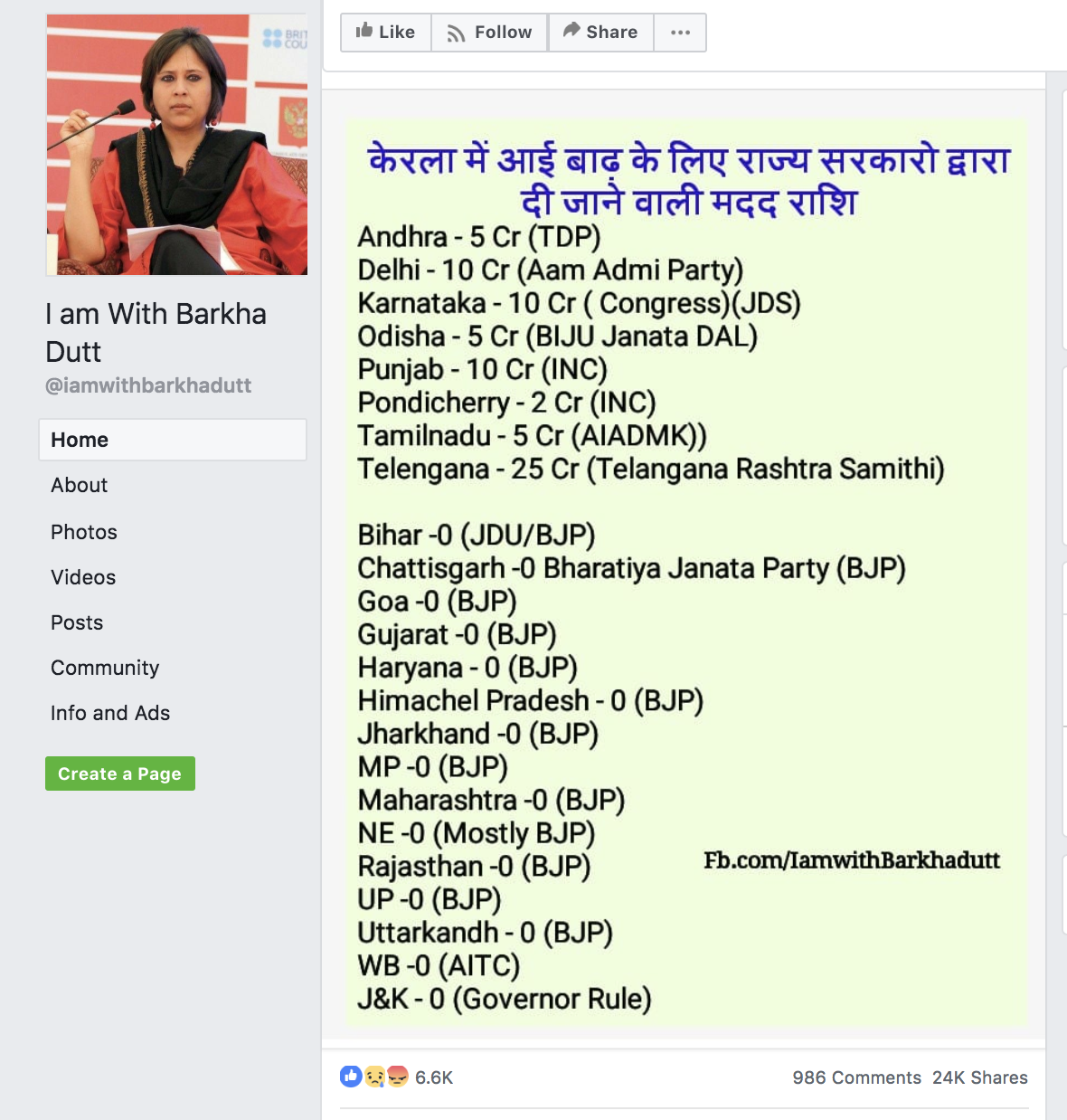 Sharing this picture of a post in the FB page “I am with Barkha“. The post seems to have been made 22 Hrs back and it is still making rounds on WhatsApp. I just got it shared by a few of my friends who are tooth and nail with BJP. As per current situation the information in the post is completely wrong.