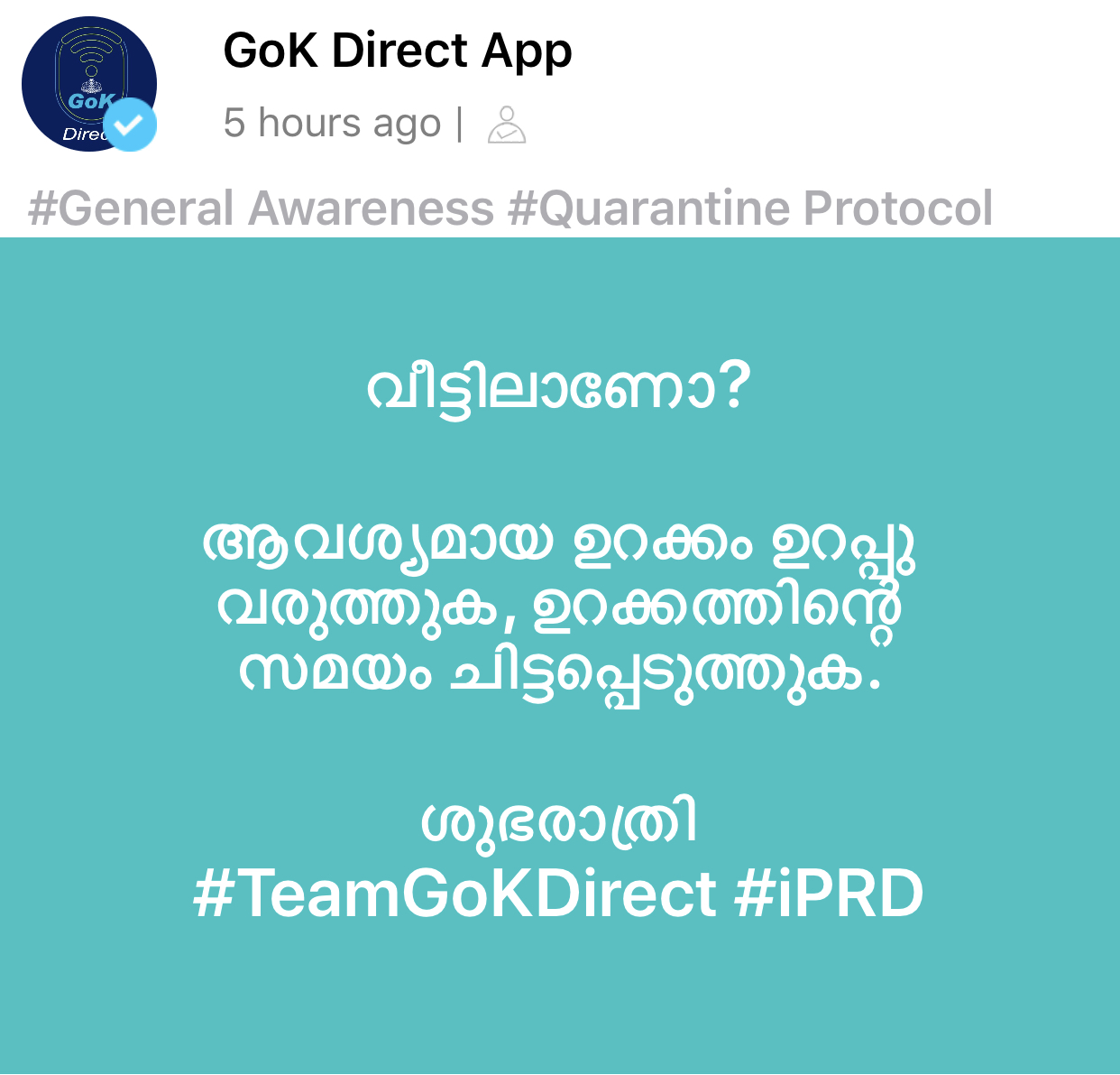 This is just one such message and if you go in you can see the breadth of the messages and it’s way of keeping its citizens equipped and informed.. All in Malayalam…